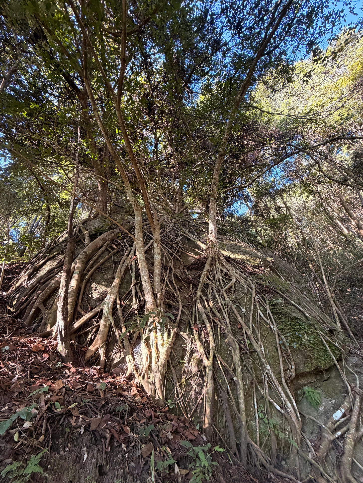 Look at how this magnificent banyan tree conquers this massive rock face. Before it ever thought about spreading its canopy toward the sun, it spent years and decades weaving its roots into every crack and crevice below first. The spectacular crown you see above ground exists only because of the invisible architecture below.